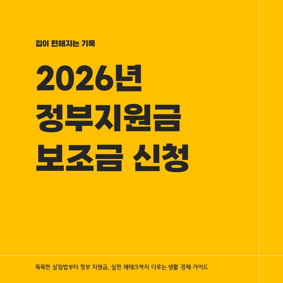 항상 건강하시고, 2026년 한 해도 정부의 따뜻한 지원과 함께 풍요로운 날들 보내시길 진심으로 응원할게요! 궁금한 점이 있다면 언제든 댓글 남겨주세요. 제가 아는 선에서 최대한 친절히 답변해 드릴게요.