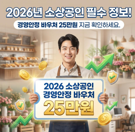 고물가에 고금리, 여기에 치솟는 임대료와 인건비까지. 2026년 현재 대한민국 소상공인 사장님들의 한숨 소리가 여기까지 들리는 듯합니다. "열심히 일해도 남는 게 없다"는 말이 단순한 푸념이 아닌 현실이 된 요즘, 정부에서 발표한 '2026 소상공인 경영안정 바우처 25만 원' 소식은 가뭄에 단비 같은 존재입니다.